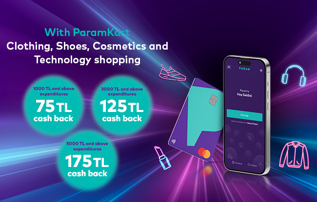 - The campaign is valid only for "Param Troy, Param MC, Param Business, Param Genç, Qnet, AdaletKart, BaroKart, TÜRMOBKart, BYS PlatinCard, Medipol, Mepaş Virtual Card, Zorlu Tekstil, Anadolu University, Uni magnet, Muratpaşa Municipality, Plugs, Tırport, DG, Kainat, Monay, Uğur Schools, Hak-kart, Harita Kadastro, Shell, Eskart cards within Param Classic card type.